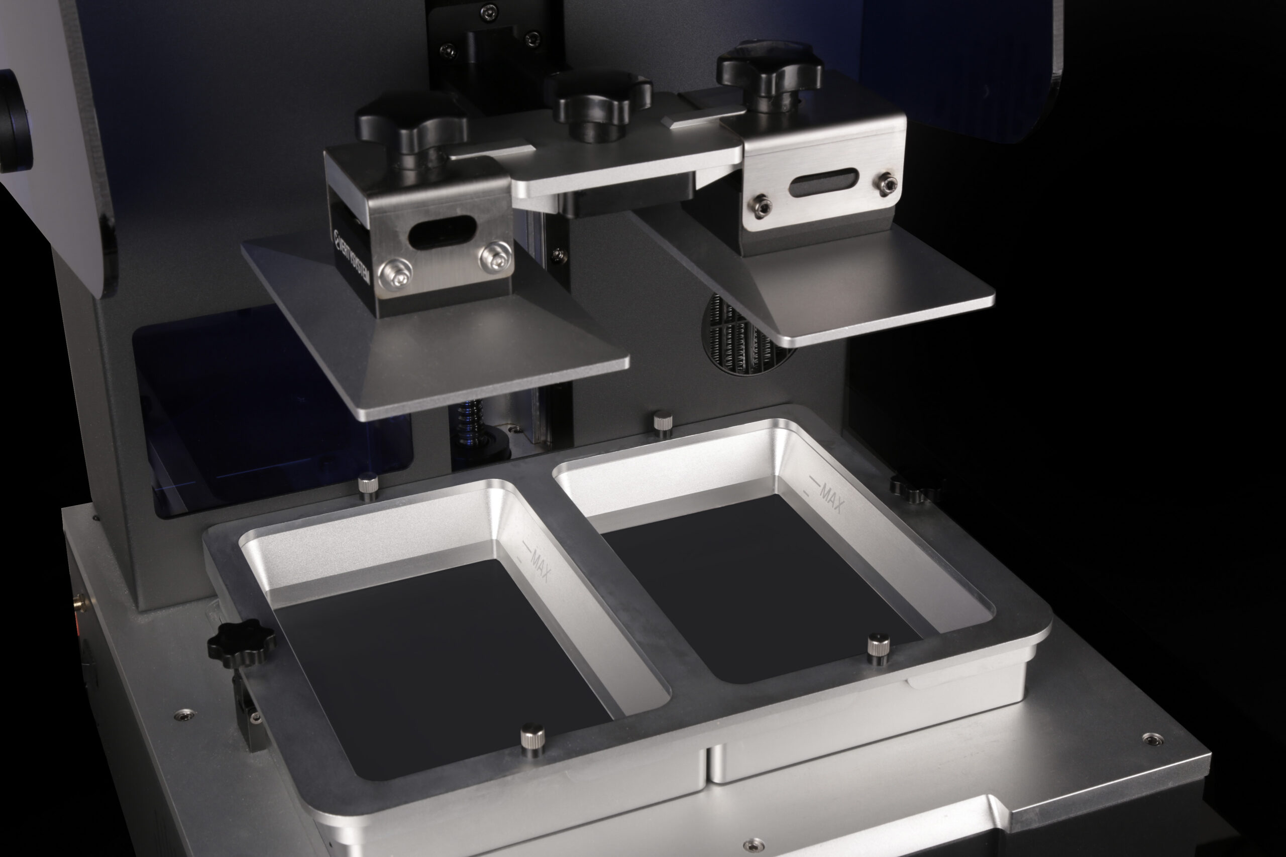 The new MOON NIGHT S XL eatures significantly improved casing and ergonomics: the XZ axis has been shortened to ensure reduced build platform descent time, and thus, a shorter setup time for your prints. Additionally, we have designed a new attachment system for both the resin tanks and build platforms on all machines. All new MOON NIGHT S models come equipped with software for remote viewing via an internal infrared camera.